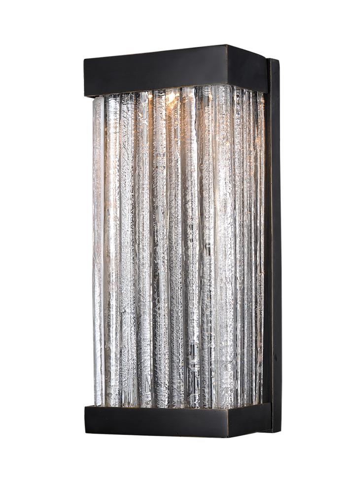 Handmade Clear glass rods are fused to an inner glass concealing an LED light source. A frame of weather resistant Vivex finished in Bronze gives this collection the perfect combination of durability and energy efficiency.