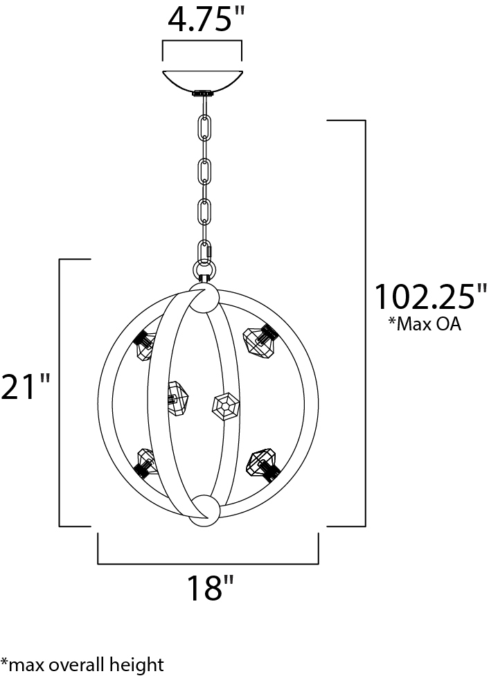 Bands of steel finished in Polished Nickle or Textured Black with Polished Nickle accents, create spherical forms of lighting. These spheres are graced with Beveled Crystal fonts which conceal dimmable LED bulbs. A perfect blend of grace, beauty and ener