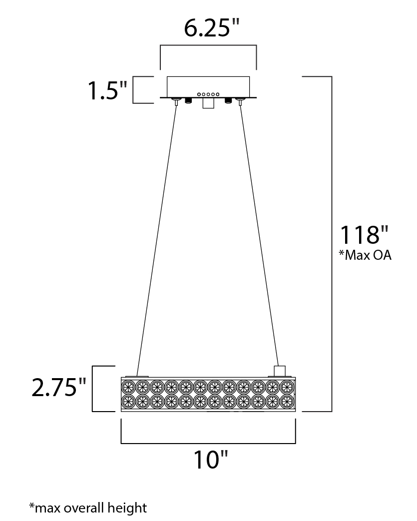 Frames of metal rings encased with Beveled Crystal Jewels, are finished in Polished Chrome. Suspended by cables as if floating In air, these rings cast rainbows of light when illuminated by the Integrated LED.