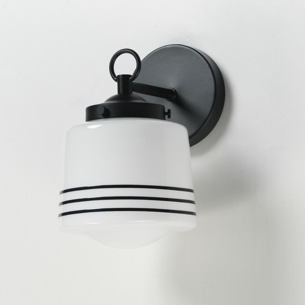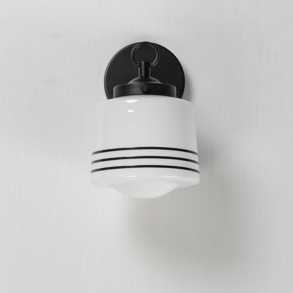 A refreshed take on classic schoolhouse glass pendants, this collection combines nostalgia with modern flair. The opal white glass shades feature repeating black stripes for a contemporary twist, while Matte Black tops and streamlined down rods add a clean