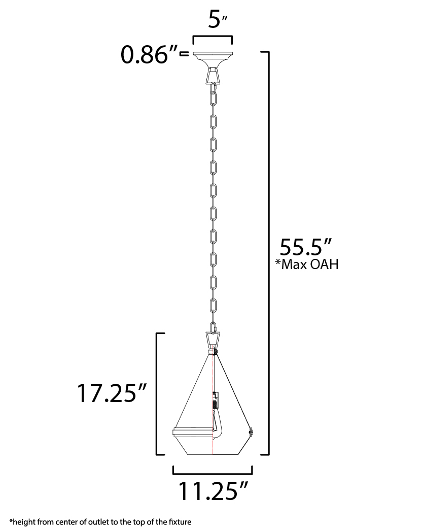 A glossy White glass shade, conical in form, is combined with sharp-lined bands of metal finished in your choice of Polished Nickel or Satin Brass to create a pyramid of softly diffused light. Squared off trapezoidal chain loops connect to squared chain li