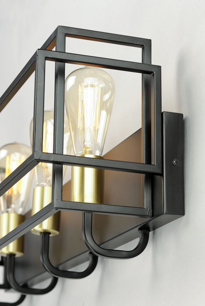 A geometric design constructed of square steel tubing that is finished in a Matte Black and accented with Satin Brass. Add a Vintage bulb for a Restoration look or a Globe lamp for a Contemporary approach. Whatever design you desire this collection will ma