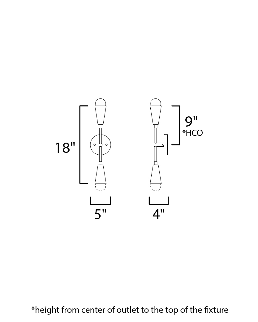 A classic mid-century look, the Lovell collection features two sizes of sputnik chandeliers and streamlined sconces perfect for bath vanity applications. Available in a Black/Satin Brass finish combination. Light bulbs nest inside the metal cones to become