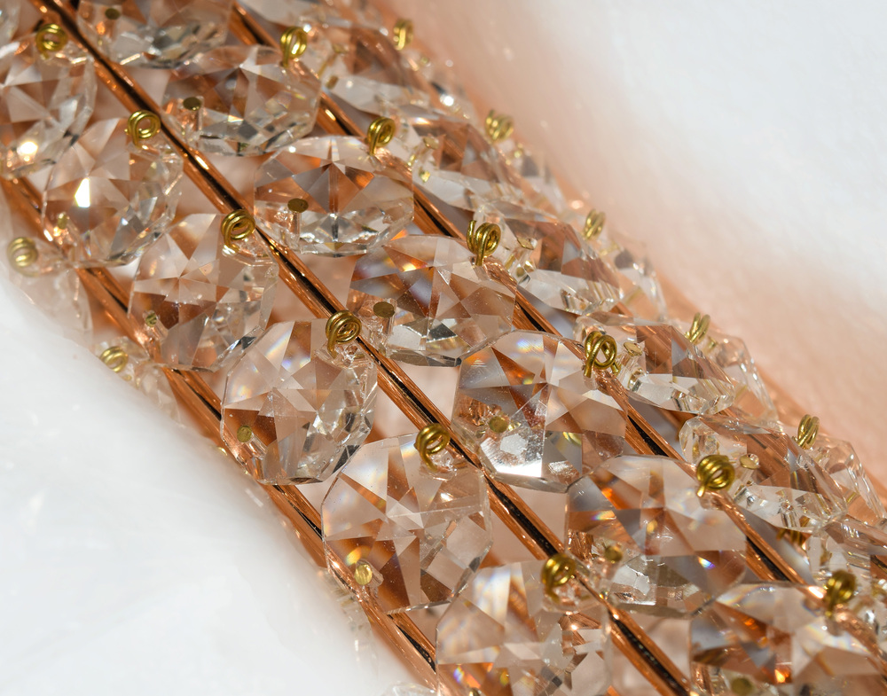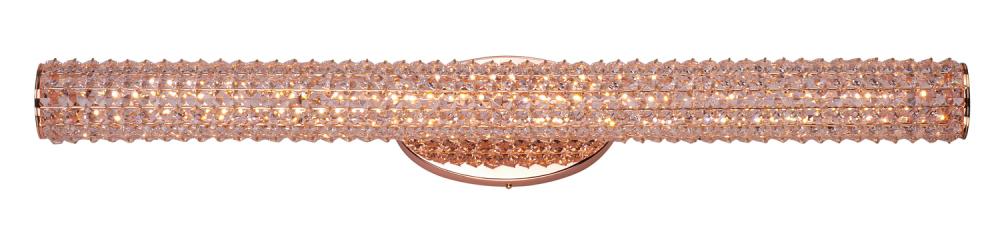 Clear Beveled Crystals Are Strung Onto A Continuous Wire And Wrapped Over A Tubular Metal Frame Finished In Your Choice Of A High Luster Polished Chrome Or Vibrant Rose Gold. Hidden Within The Tubular Frame Is A LED Light Source, Which Not Only Adds Beauty And Sparkle To The Crystal, But Adds Ample Light For The Vanity.