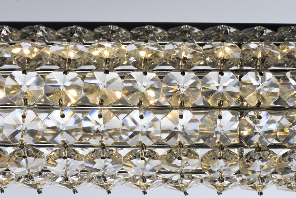 Clear Beveled Crystals are strung onto a continuous wire and wrapped over a tubular metal frame finished in your choice of a high luster Polished Chrome or vibrant Rose Gold. Hidden within the tubular frame is a LED light source, which not only adds beauty