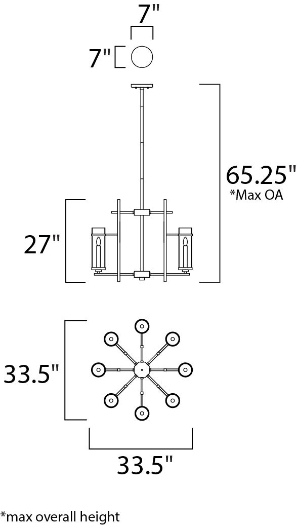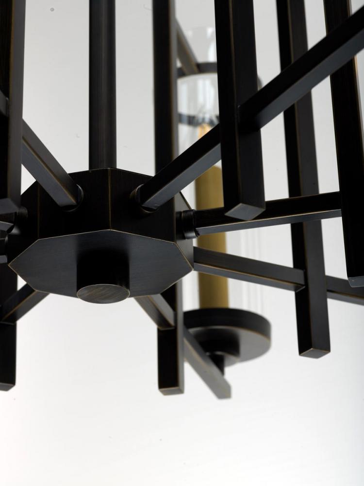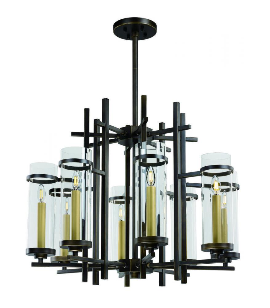 It is hard to find large scale lighting for those large areas that is not custom made. This collection features a metal frame finished in Gold Bronze supporting tall Clear glass cylinders. The tall scale candles finished in a complimentary gold are topped with LED filament bulbs which are included.