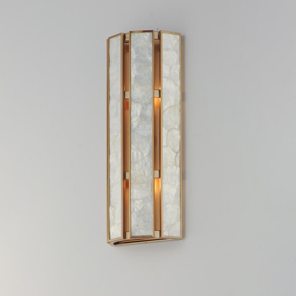 Classic in form and evoking the sea, laminae of Capiz shell are framed in paneled drum shapes. The Natural Aged Brass finish refines the coastal elements and complements the warm glow from behind the translucent panels. Available in multiple configurations