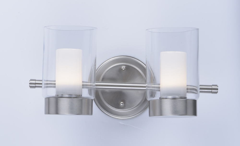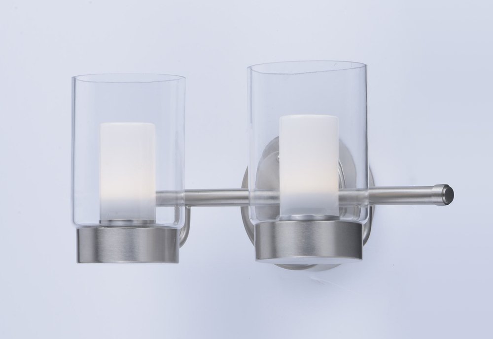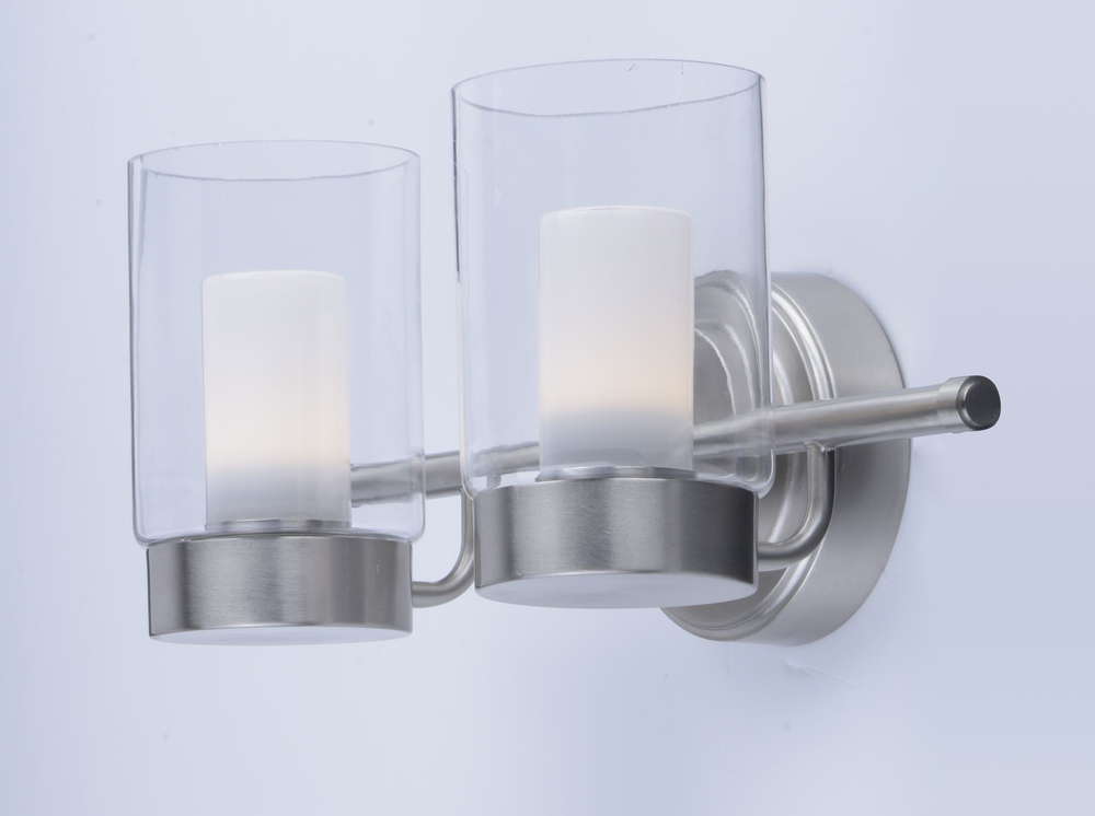 A contemporary design featuring a Satin Nickel frame supporting Clear cylinder glass shades with Frost interior diffusers all powered with energy efficient LED technology. Finally LED technology at an affordable price.