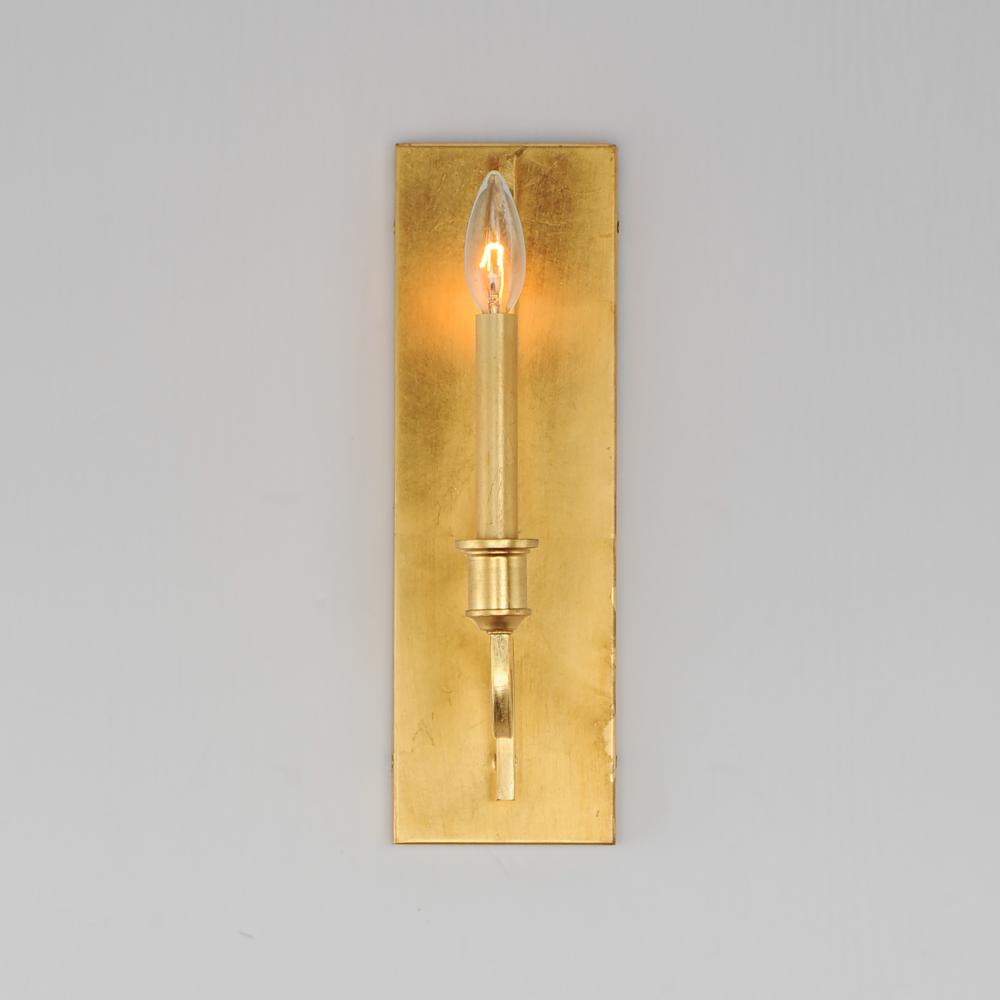Gallant in hand-applied Gold Leaf, the Normandy collection is a look befitting a chateau of the Middle Ages. Both traditional and handsome, the exposed candelabras are gilt in matching Gold Leaf sleeves as they perch at the end of decorative bobeches. The