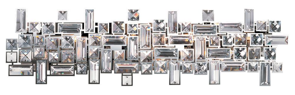 Two Layers Of A Geometric Frame Of Steel, Finished In Polished Chrome, Are Embedded With Various Beveled Crystal Pendants To Create A 3-Dimensional Look Of Elegance And Beauty. The Paradigm Provides Bling For The Bath.