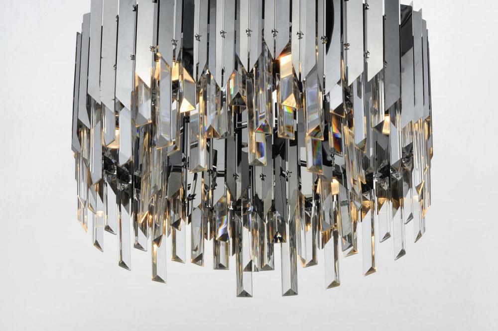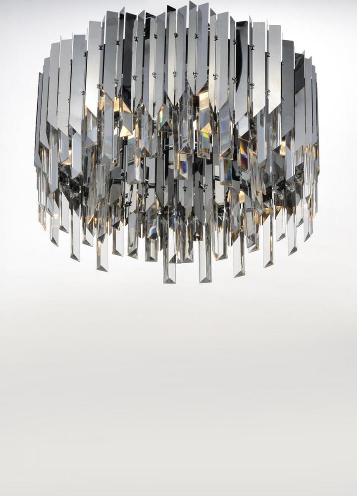 An exquisite collection featuring V-shaped stainless panels that trace a drum shade along cascading rows of Beveled Crystal prisms. The crystal shimmers under the light of replaceable LED reflector lamps. This updated crystal design will be at home in anyw