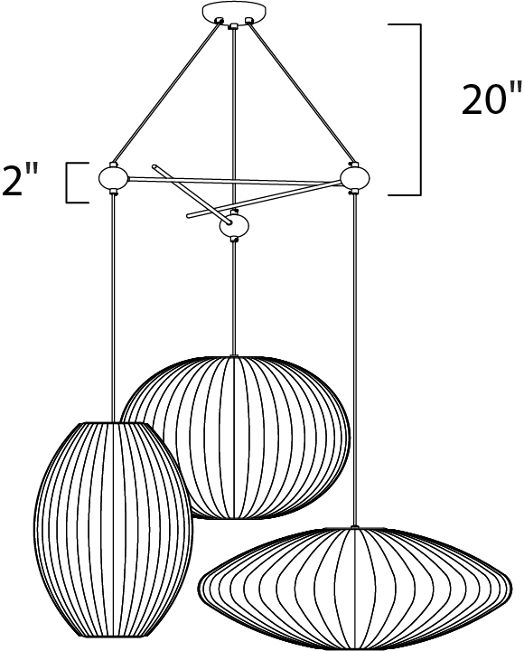Using this kit you can create your own arrangement of cord hund pendants. Purchase any three Cocoon or Vino pendants and the kit to create your cascading design. Kit includes separator and three cord canopy.
