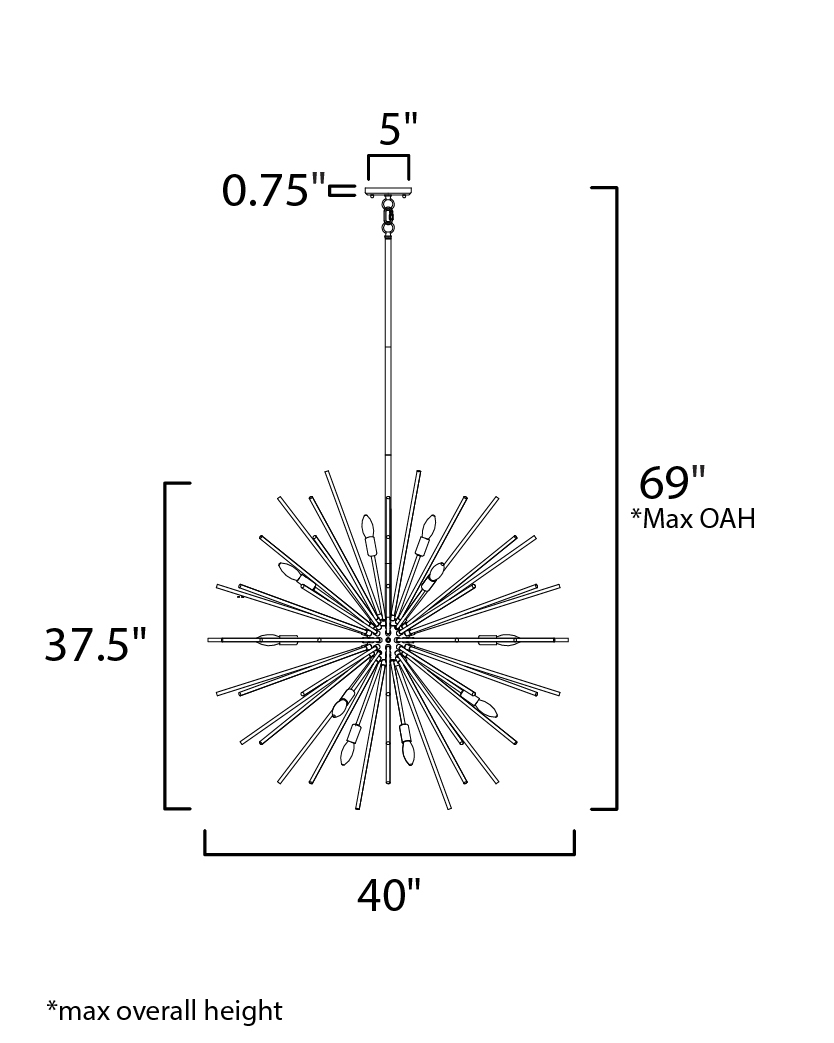 A dazzling burst of Clear glass rods extend from a classic sputnik shape finished in a bright Polished Chrome or warm Satin Brass. Available in two sizes of pendants and as a ceiling fixture, this unique look is a statement piece designed to attract attent