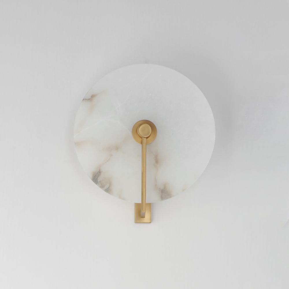 Modern in execution, the Quarry collection features natural Spanish alabaster in an iron frame finished in Darkened Bronze or Natural Aged Brass. Dedicated LED housing shine light on alabaster panels, highlighting the stone's beautiful, veined characte
