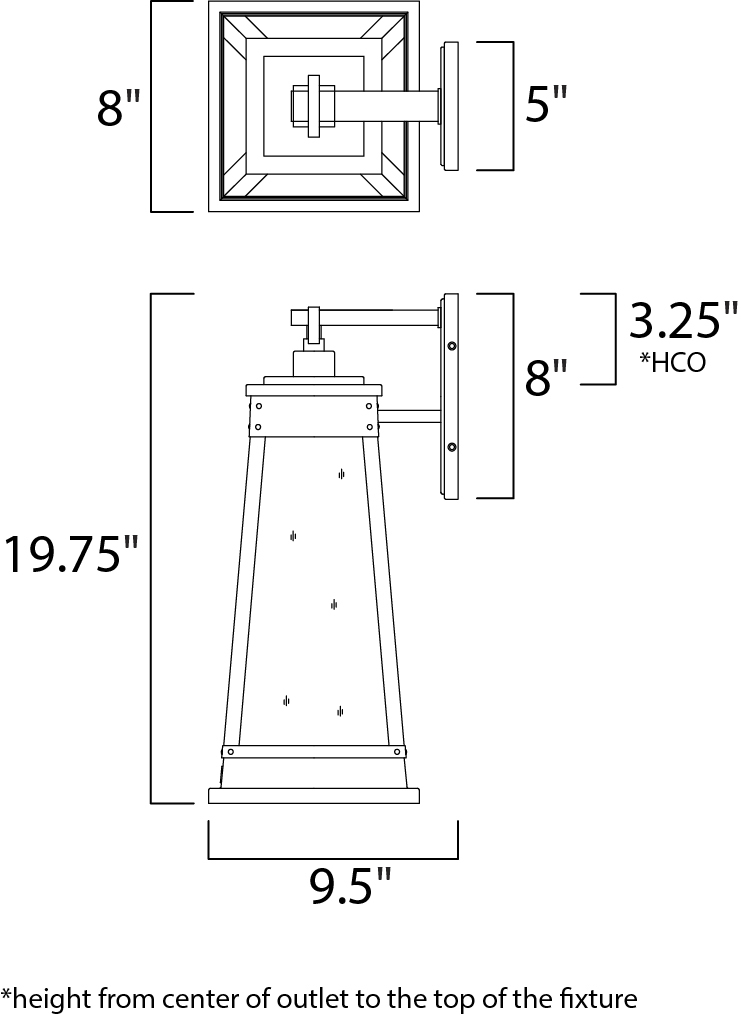 A tapered square shade finished in Olde Brass suspends from a bracket to replicate a nautical lantern. Panels of clear Ripple glass allow for the lamp to shine through while still diffusing the light. The medallion at the base of the shade and rivets along