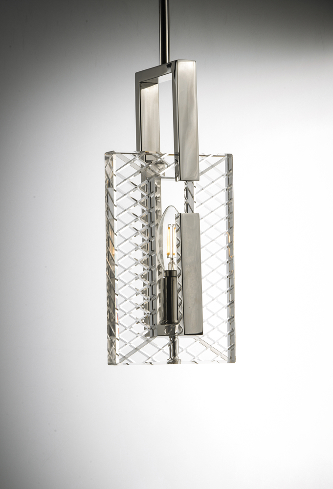 Solid blocks of Clear optic crystal are etched and carved and supported by contemporary frames finished in a lustrous Polished Chrome. The high polished frame compliments and enhances the beauty of these hand crafted crystal blocks.