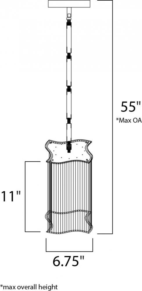 Swizzle collection's gently curved frames of Polished Chrome support twisted Clear glass rods that shimmer in front of the natural light of the included xenon lamps. The interior of the fixture is draped with strands of clear beveled crystal that spark