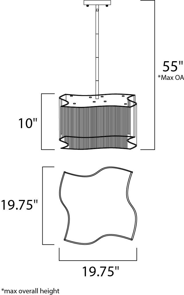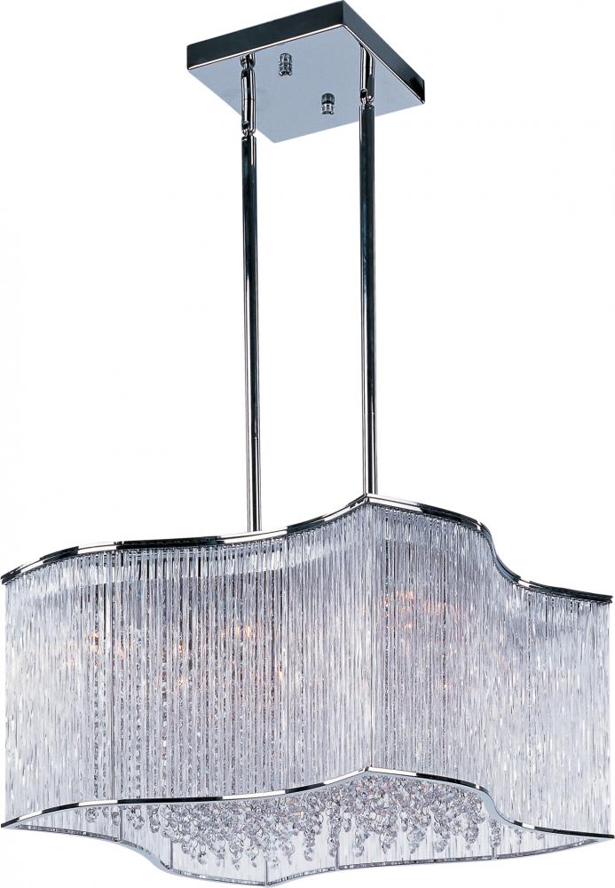 Swizzle collection's gently curved frames of Polished Chrome support twisted Clear glass rods that shimmer in front of the natural light of the included xenon lamps. The interior of the fixture is draped with strands of clear beveled crystal that spark