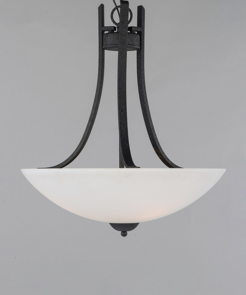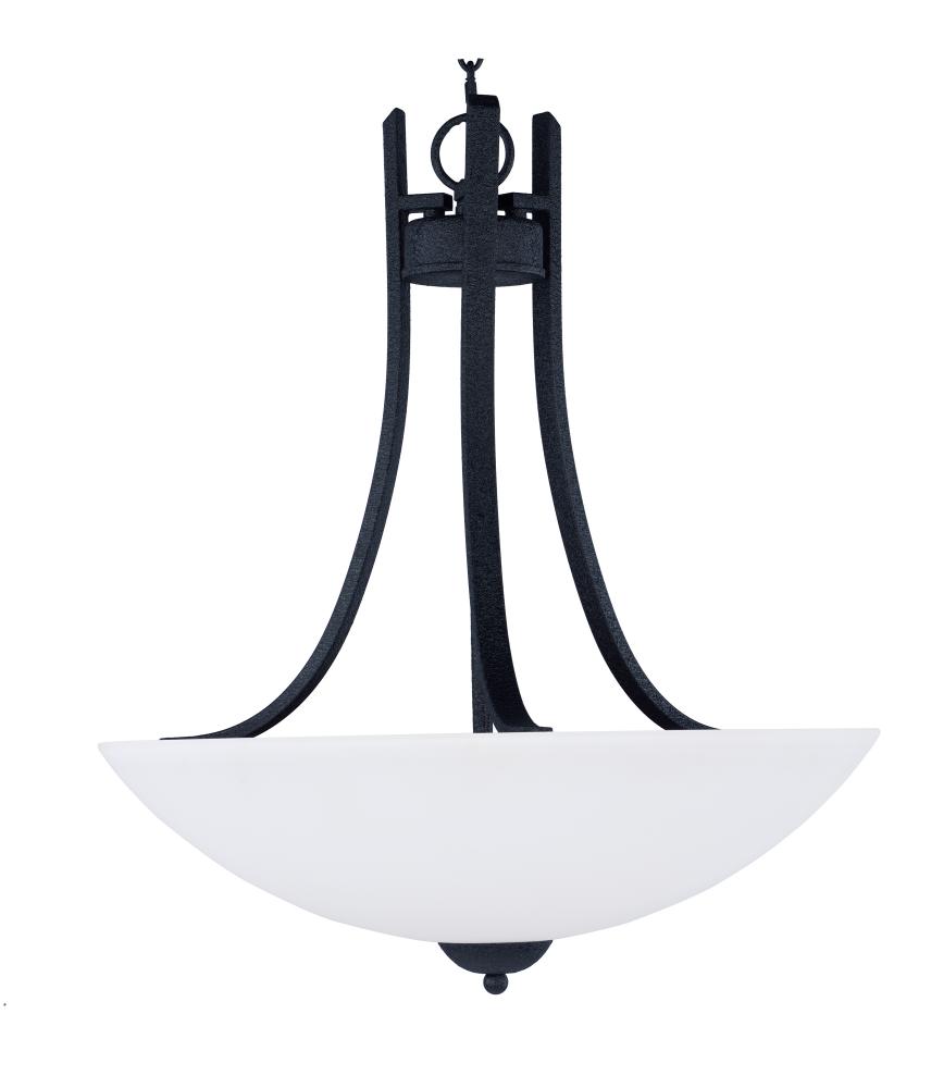Heavy rectangular tubing support tall scale Satin White glass shades that creates an upscale forged look at a builder price. Available in your choice of Textured Black or Satin Nickel, this collection is complete enough to do the entire home.