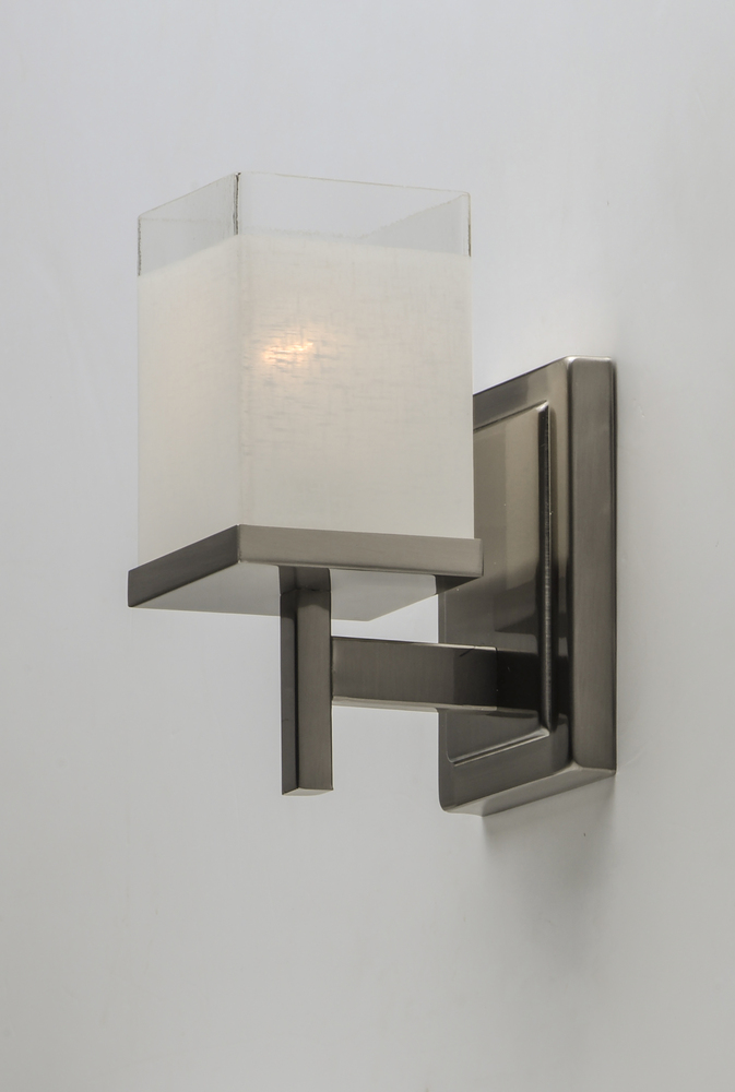 Square glass shades ride upon a rectangular bar to create geometry at its best. Available in Polished Chrome with Satin White glass and Satin Nickel and white Linen glass.