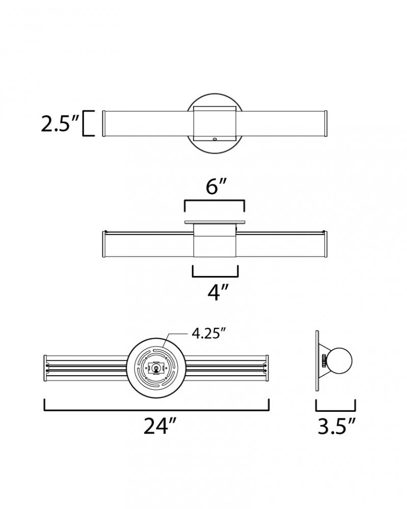 A tube of light extends in both directions in this clean and contemporary LED wall sconce. Available in various lengths and finishes, the fixture can either be mounted directly from its frame on a single gang box or with the use of the five inch cover plat