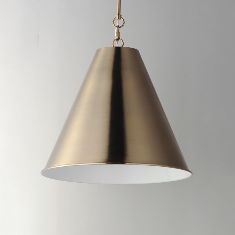 The iconic metal spun cone shade offers a transitional pendant design great as multiples over a kitchen island or dining table. Available in rich finishes including Heritage Brass, Satin Nickel, and Chestnut Bronze. All these shades are painted white on th