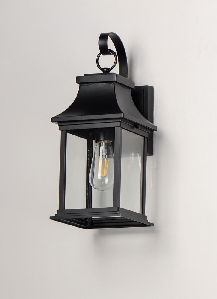 Inspired by classic coach gas lanterns, the Vicksburg collection features die-cast aluminum construction finished in Black with Clear glass. The candle sleeves are done in a contrasting off-white finish to add dimension to the lantern. Available in numerou