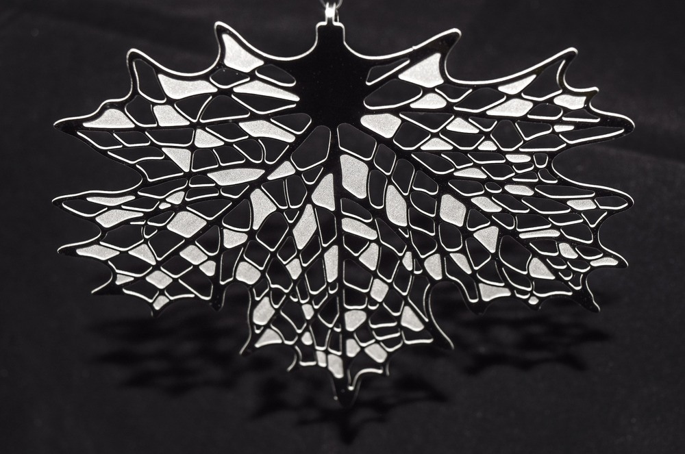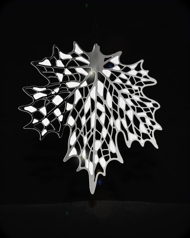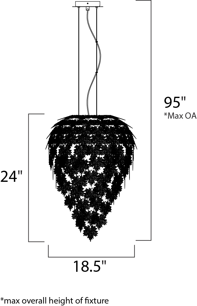 Intricately detailed leaves of Polished Chrome stainless steel are formed by a two-step process. This creates a two layer texture to each leaf for a multi-dimensional appearance. Clusters of crystal grapes and vines adorn the inside and shimmer through the