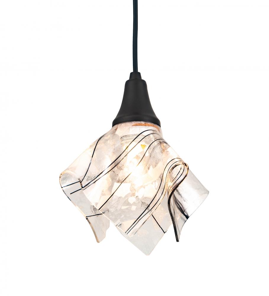 Bare trees against a winter sky inspired the Branches. This Handkerchief Branches pendant features Clear glass drizzled with Midnight Black. The art glass is high fired to fall into a flowing draped fabric shape. The shade is complemented with Textured Black hardware and a matching cord. The overall height of this pendant ranges from 13 to 85 inches as the cord length can be easily adjusted in the field to accommodate your specific lighting application needs. Handcrafted by expert artisans in our 180;000 square foot manufacturing facility in Yorkville; NY. Custom finishes; styles and sizes are available. Dimmable energy efficient lamping options are offered. UL and cUL listed for dry and damp locations.
