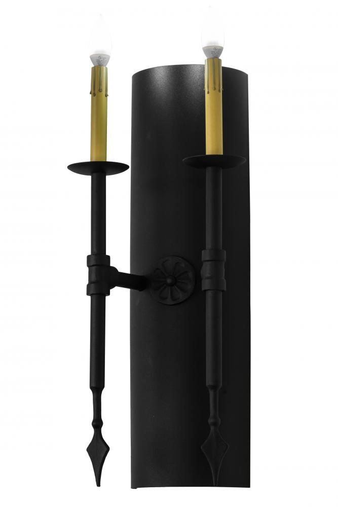 Welcome a handsome transitional look into your home or business with the stunning Warwick wall sconce; which integrates a distinctive motif with classic styling. Two faux Amber candlelights; perched atop bobeches embraced on a curved backplate; provide beautiful ambient lighting using customer-supplied 3-watt LED lamps which feature energy savings; reduced maintenance and long life. Designed with spear tip accents in a Black Textured finish; Warwick completes an evocative impression. Custom crafted in our 180;000 square foot manufacturing facility in Yorkville; New York. Available in custom finishes; sizes and colors; as well as dimmable lamping options. The wall luminaire is UL and cUL listed for damp and dry locations.