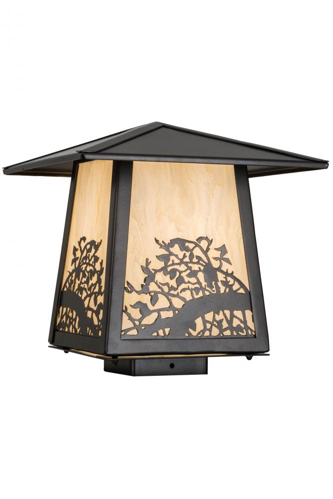 This impressive nature inspired post mount is custom crafted with a Mission styled shade featuring delicate Apple Branches and blossoms that accentuate stunning Creme Carrare Idalight. The shade is complemented with steel hardware; decorative accents and frame featured in an Oil Rubbed Bronze finish. Custom made by expert artisans; this fixture is perfect for indoor and outdoor applications; which is typically mounted to a post or column. Custom colors; styles and sizes are available. Energy efficient lamping options such as LED are offered. The fixture is UL and cUL listed for damp and dry locations.