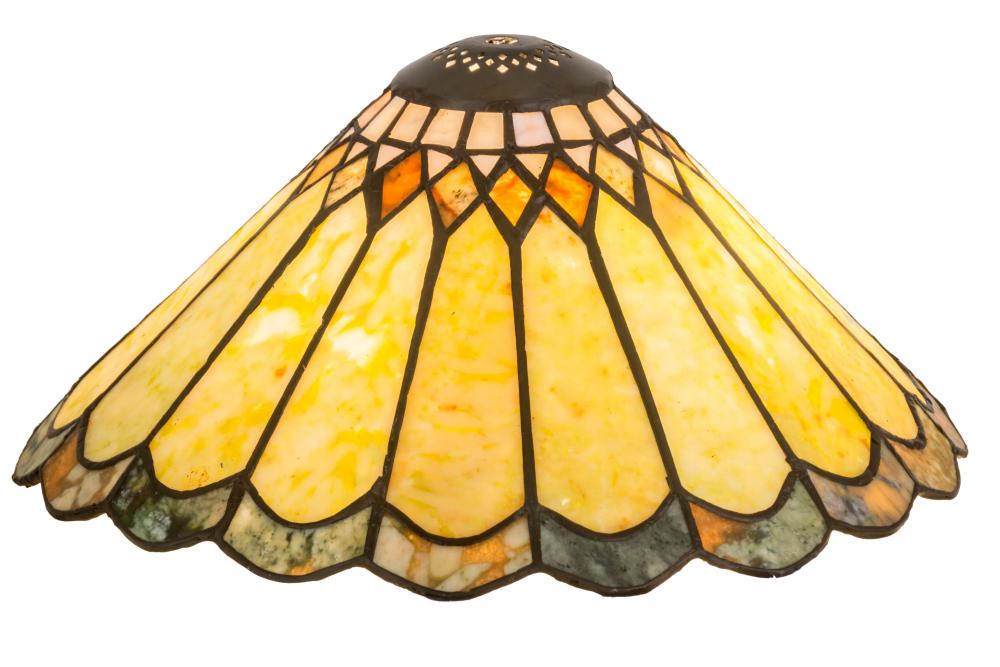 Thinly carved and polished natural Jadestone in earthy tones of Moss Green; Tan and Coral; become luminescent in this charming scalloped edged shade. The stone shade is crafted with the famous Meyda Tiffany copperfoil process used to create stained glass shades.? Pairs well with a base to create a table or floor lamp; or matches with hardware to build a beautiful wall or ceiling fixture. The Carousel Jadestone Shade is featured in our American designed; handcrafted Jadestone Lighting Collection. Each shade is a unique work of art with color variations based on natural ingredients inherent in the Jadestone. Contact us if color matching is critical when ordering multiple items.