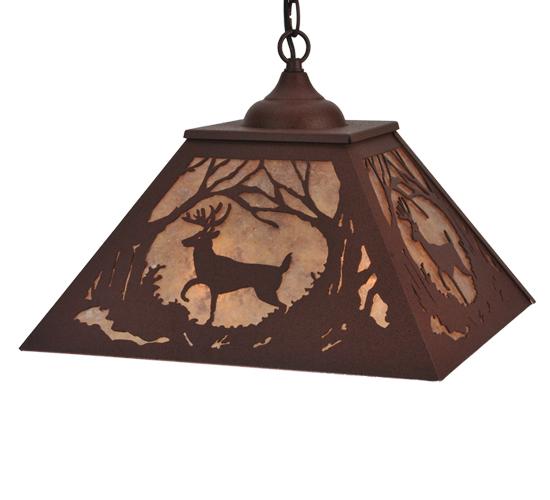 Rustic charm is captured beautifully with this striking pendant design of a Trophy Buck scampering through the woodlands as Tall Pine Trees stretch towards the sky. Brilliant ambient light shines through a stunning Silver Mica shade which is enhanced with decorative accents; frame and matching hardware featured in a Rust finish. This wildlife inspired pendant makes the ideal centerpiece for nearly any room. Overall height ranges from 16 to 43 inches as the chain can be adjusted in the field. The Deer at Dawn Pendant is featured in our American made; American designed handcrafted Wildlife Lighting Collection. Manufactured in Yorkville; New York. UL and cUL listed for dry and damp locations.
