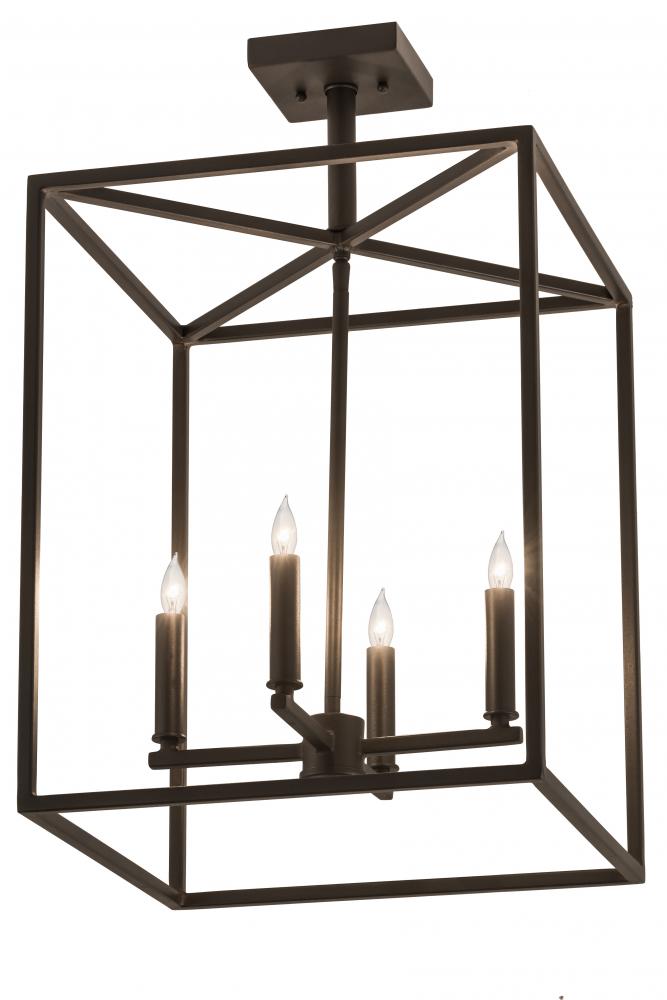 A sophisticated architecturally styled fixture is designed with a stunning look that is unique; fresh and stylish. Give your decor an extra edge with this breathtaking geometric fixture; which is highlighted with a solid metal structure that reveals a 4-light faux candelabra. The hardware and frame are offered in a handsome Wrought Iron finish. Handcrafted in the USA; Kitzi is available in custom sizes; styles and finishes; as well as dimmable energy efficient lamping options such as LED. The fixture is UL and CUL listed for dry and damp locations.