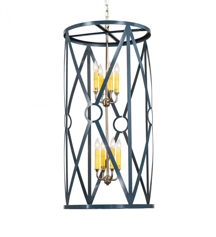 American craftsmanship creates the beauty of fine lighting with this elegant Penelope pendant. A curvaceous frame reveals eight Amber faux candlelights perched on Polish Nickel finished bobeches for beautiful ambient illumination. The pendant is enhanced with decorative accents hand finished in a Tempe Star hue. Overall height ranges from 42 to 161 inches as the chain length can be easily adjusted in the field to accommodate your specific lighting application needs. Handcrafted in our 180;000 square foot manufacturing facility in Yorkville; NY. Candlelight colors; metal finishes and pendant sizes can be customized to meet your needs. UL and cUL listed for damp and dry locations.