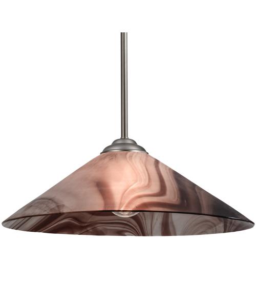 Sleek and upscale the metro pendant with cone shaped baroque art glass shade in a Raspberry and Sugar White toned Chambord Swirl finish with Brushed Nickel finished hardware; reflects the vibrant soul of the city.