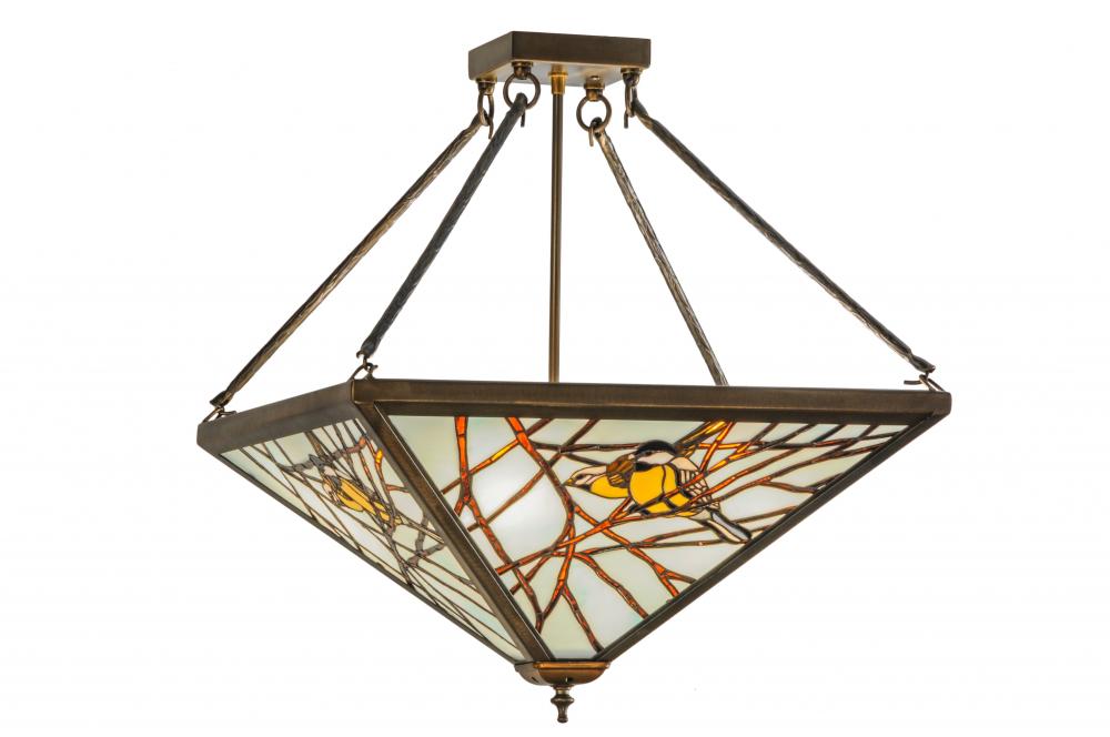 Bark Brown branches across an Azure sky make a pleasant repose for these often seen backyard bird friends. A Meyda original design; the handcrafted stained glass panels are set in an Antique Copper finished frame; handcrafted at our manufacturing facilities in Yorkville; New York; at the foothills of the Adirondack Mountains. Custom colors; designs and sizes available.