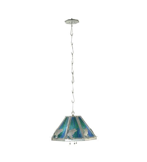 A Largemouth Bass finished in a Sparkle Silver powder coat is depicted on this wildlife inspired pendant. The fixture is adorned with stunning Blue/Green Art Glass to match the stunning hues of beautiful lakes and rivers. Overall height ranges from 16 to 60 inches as the uniquely styled fishhook accented chain can be easily adjusted in the field. The Leaping Bass Pendant?is featured in our American made; American designed; handcrafted Sportsman Lighting Collection. Manufactured in Yorkville; New York. UL and cUL listed for dry and damp locations.