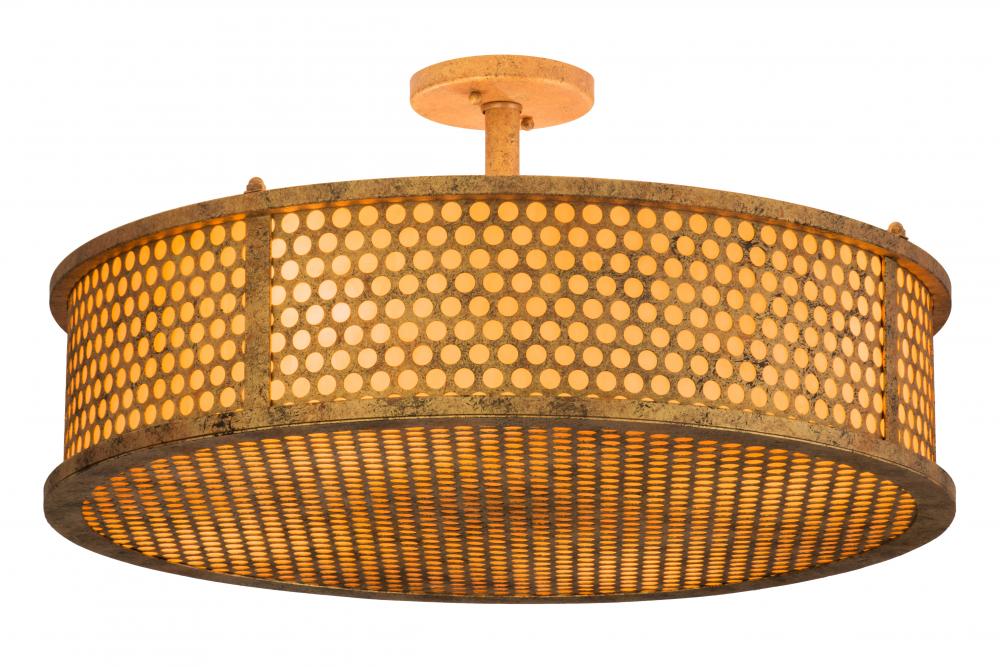Rendering a unique design featuring an array of circlets; Luciano evokes beautiful ambient light with contemporary style that will provide a distinctive charm in any environment. Its decorative accents; hardware and frame in a warm Autumn Leaf finish are accentuated with stunning Amber Quartz Idalight diffuser. Custom crafted by highly skilled artisans in our 180;000 square foot manufacturing facility in Yorkville; New York; this ceiling fixture is available in custom sizes; styles and finishes; as well as dimmable energy efficient lamping options. The 24-inch wide flushmount is UL and cUL listed for damp and dry locations.