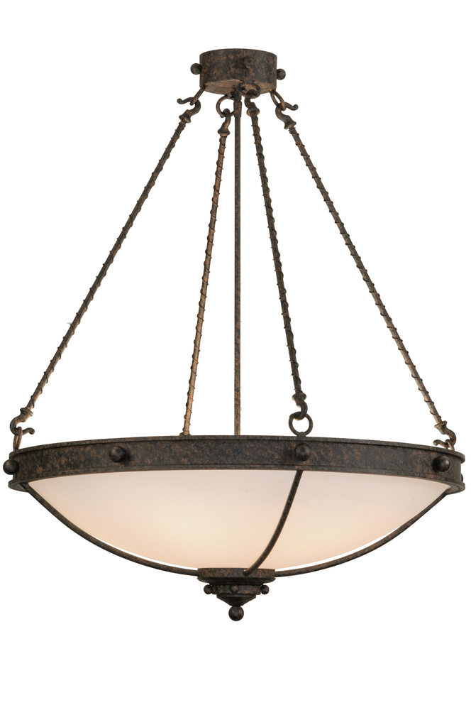 From Manhattan to LA and everywhere in between; this fixture evokes an eclectic design flair that will enhance any dining area; conference room; lobby or restaurant. An appealing Statuario Idalight bowl diffuses soft ambient light while the frame and suspension rods with rope-like accents are featured in a Coffee Bean finish. Handcrafted by highly skilled artisans in our manufacturing facility in Yorkville; NY. Custom colors; styles and sizes are available. Energy efficient lamping options such as LED are available. The 30-inch wide fixture is UL and cUL listed for dry and damp locations.