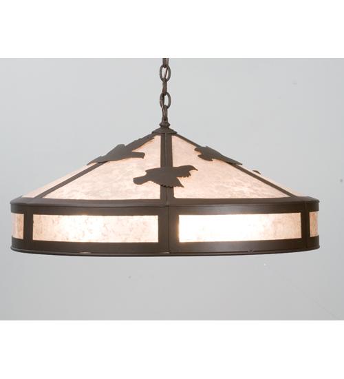A flock of Quail circle this wildlife inspired poker pendant. This rustic fixture is finished in Cafe Noir and has Silver mica panels. Handcrafted in our 180;000 square foot manufacturing facility in Yorkville; New York at the foothills of the glorious Adirondack Mountains. Custom choices include various designs; finishes; and sizes. Dimmable energy efficient lamping options offered. UL and cUL listed.