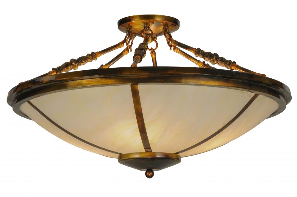 Bring a stunning transitional look into a fine home; hospitality or commercial setting with this architecturally styled ceiling fixture. Designed with a stunning Creme Carrare Idalight diffuser; Commerce is enhanced with Light Burnished Transparent Gold finished hardware. The fixture is perfect for ambient illumination in a variety of rooms. The semi-flushmount is handcrafted in the USA and available in custom styles; sizes; designs and dimmable lamping options such as LED. The ceiling fixture is UL and cUL listed for damp and dry locations.