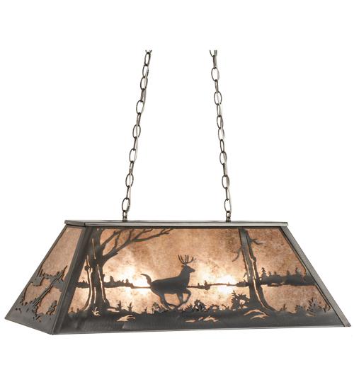 Rustic charm captured beautifully with this striking pendant design of a young buck leaping through the trees in the woods. Warm ambient lighting is created by a stunning Silver Mica light diffuser enhanced by accents; frame and matching hardware finished in Steel. Ideal for placement over kitchen islands; counters; dining and billiard tables. Handcrafted in the Meyda manufacturing facility; located at the foothills of the Adirondack Mountains. Additional wildlife and custom designs available; as well as energy efficient lamping options. This fixture is UL and cUL listed for damp and dry locations.