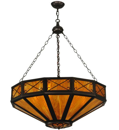 An excellent choice. This striking pendant features stunning Saltire stylized accents on a Honey art glass shade. The shade is complemented with a frame and hardware hand finished in a Mahogany Bronze hue. The curvaceous ceiling fixture is handmade by highly skilled artisans in our 180;000 square foot manufacturing facility in Yorkville; New York. Various finishes; styles and sizes are available. UL and cUL listed for dry and damp locations.