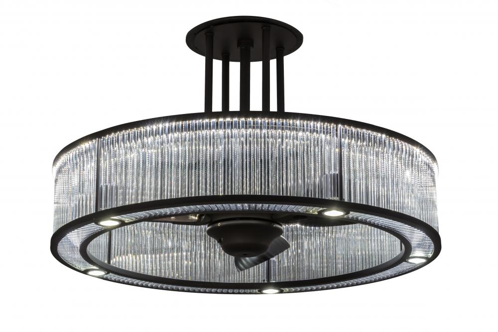 An amazing; fan-tastic energy efficient decorating innovation for a home; retail or hospitality location; this masterfully designed and custom crafted Chandel-Air adds drama and sophistication paired with distinctive custom lighting and fan technology to any room. Marquee Gural is a unique modern marvel featuring Clear Glass with crisp; clean prismatic lines that evoke a dramatic dimensional illusion and textural look. The diffuser is complemented with architecturally styled trim and hardware offered in an Oil Rubbed Bronze finish. Integral LEDs evoke decorative illumination that bring out the beauty of the glass while five 5-watt LED downlights deliver functional task lighting on surfaces below. Handcrafted in Yorkville; NY by Meyda artisans; this Chandel-Air creates a windchill to keep the space cool in the summer; and is reversed in the winter to push down hot air and maintain warmth. Dimmable lamping options; as well as custom sizes; styles and colors; are available. The fixture i