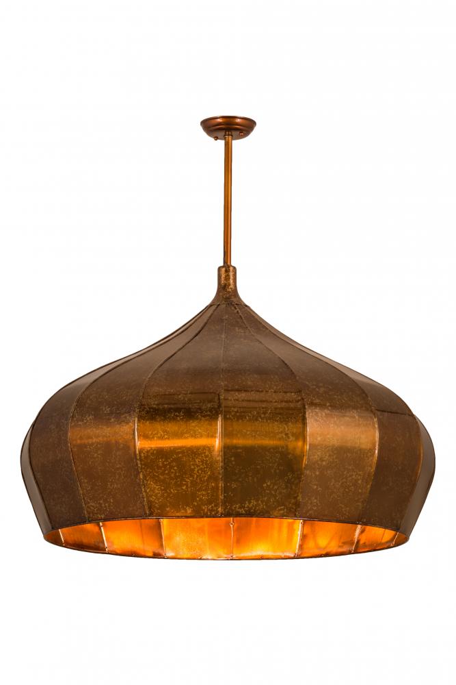 Like an uncommon onion body ready to unfurl each layer of densely clustered fibrous skin petal by petal; this creation evolves as a unique lighting centerpiece for a kitchen; foyer or any room in nearly any space. Punjab features a Solid Steel pendant handcrafted in a Transparent Copper finish with Gold Highlights. Custom crafted in our manufacturing facility in the USA; this fixture is available in custom materials; styles and finishes; as well as dimmable energy efficient lamping options. UL and cUL Listed.