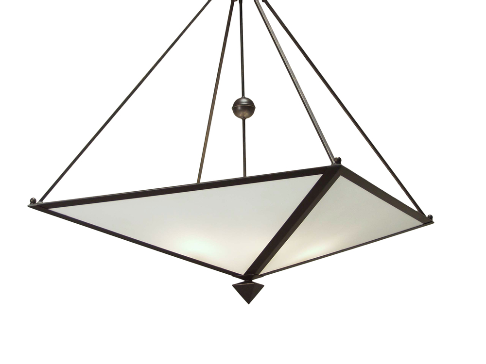 A cool contemporary ceiling pendant. Designed for fine interiors in homes; hotels; restaurants and commercial spaces. This geometric styled fixture features a Statuario Idalight diffuser. The shade is complemented with a solid frame and hardware in a Gilded Tobacco finish. The fixture is handcrafted in our 180;000 square foot manufacturing facility in Yorkville; New York. Custom options include special sizes and finishes. The pendant is UL and cUL listed for damp and dry locations.
