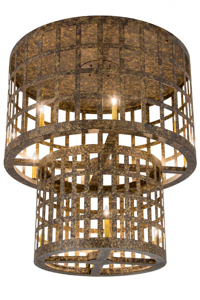 Discover a unique decorative look and industrial lighting design featuring a Grand styled caged frame and exposed customer-supplied; faux candelabra lamping configurations displayed from within. Cilindro Golpe offers solid hardware and frame featured in a stunning Old Gold finish. The 40-inch wide fixture is ideal for illuminating entryways; lobbies and large residential and commercial spaces. Handcrafted by highly skilled artisans in the USA; this fixture is offered in a myriad of custom lamping options including LED; as well as sizes; designs and finishes. The fixture is UL and cUL listed for damp and dry locations.