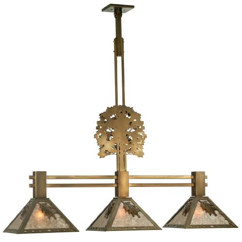 45" Long Oak Tree Oak Leaf 3 Light Island Pendant