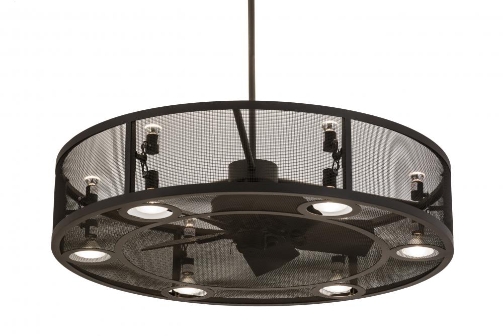 Handsome styling meets engineering innovation. This fan-tastic; energy-efficient decorating idea for a home; retail or hospitality location features a custom crafted Chandel-Air design with an Oil Rubbed Bronze finished mesh frame and hardware. The modern marvel combines a ceiling fan within a handsome lighting fixture that features LED lamps provided by customer- 6 Medium base MR16 50W LED uplights for ambient illumination and 6 Medium base PAR30 50W LED downlights for functional task lighting. Handcrafted at the foothills of the spectacular Adirondack Mountains; this energy-saving 48-inch wide Chandel-Air creates a wind chill to keep the space cool in the summer; and is reversed in the winter to push down hot air and maintain warmth.